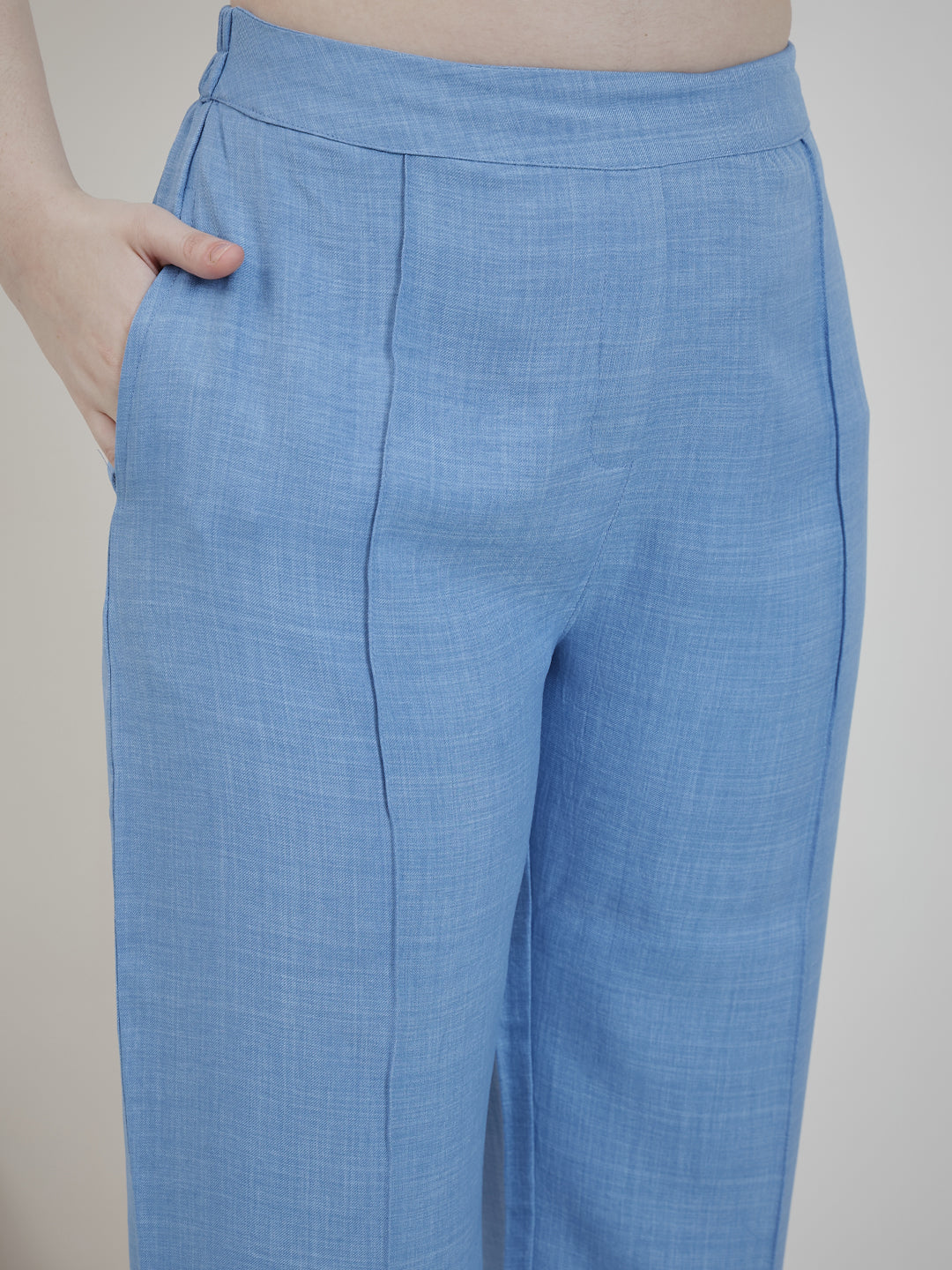 Blue solid trousers, has an elasticated waistband with slip-on closure has 2 pockets
