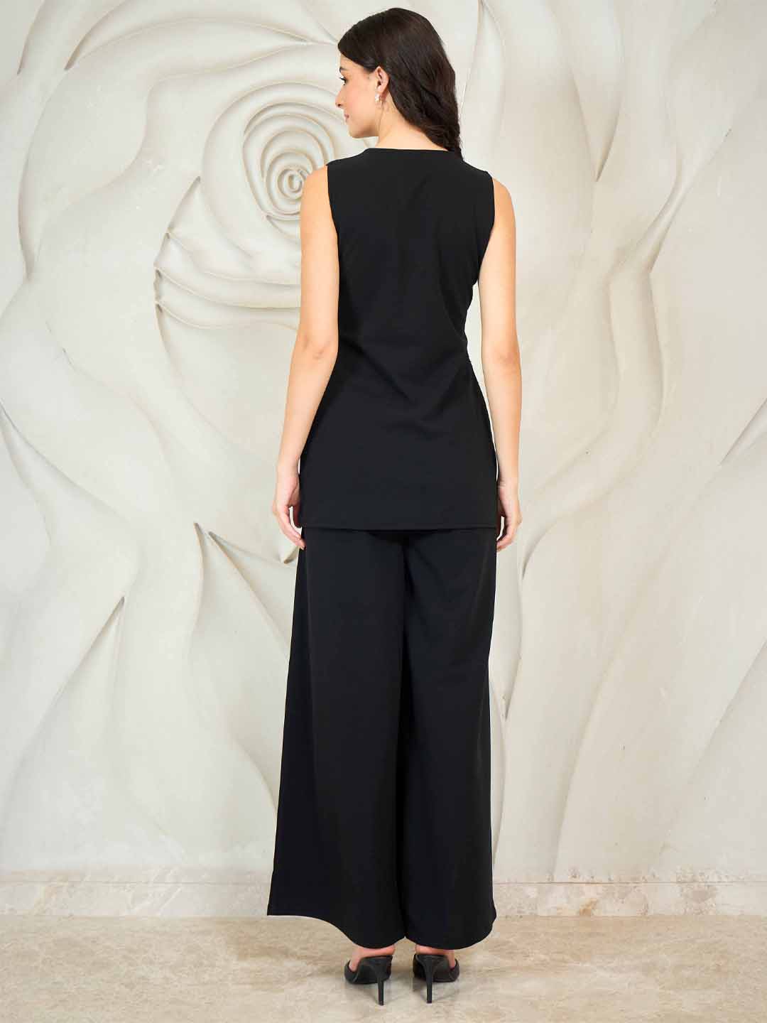 Black Embellished top has a V neck and sleeveless secured with slip-on closure