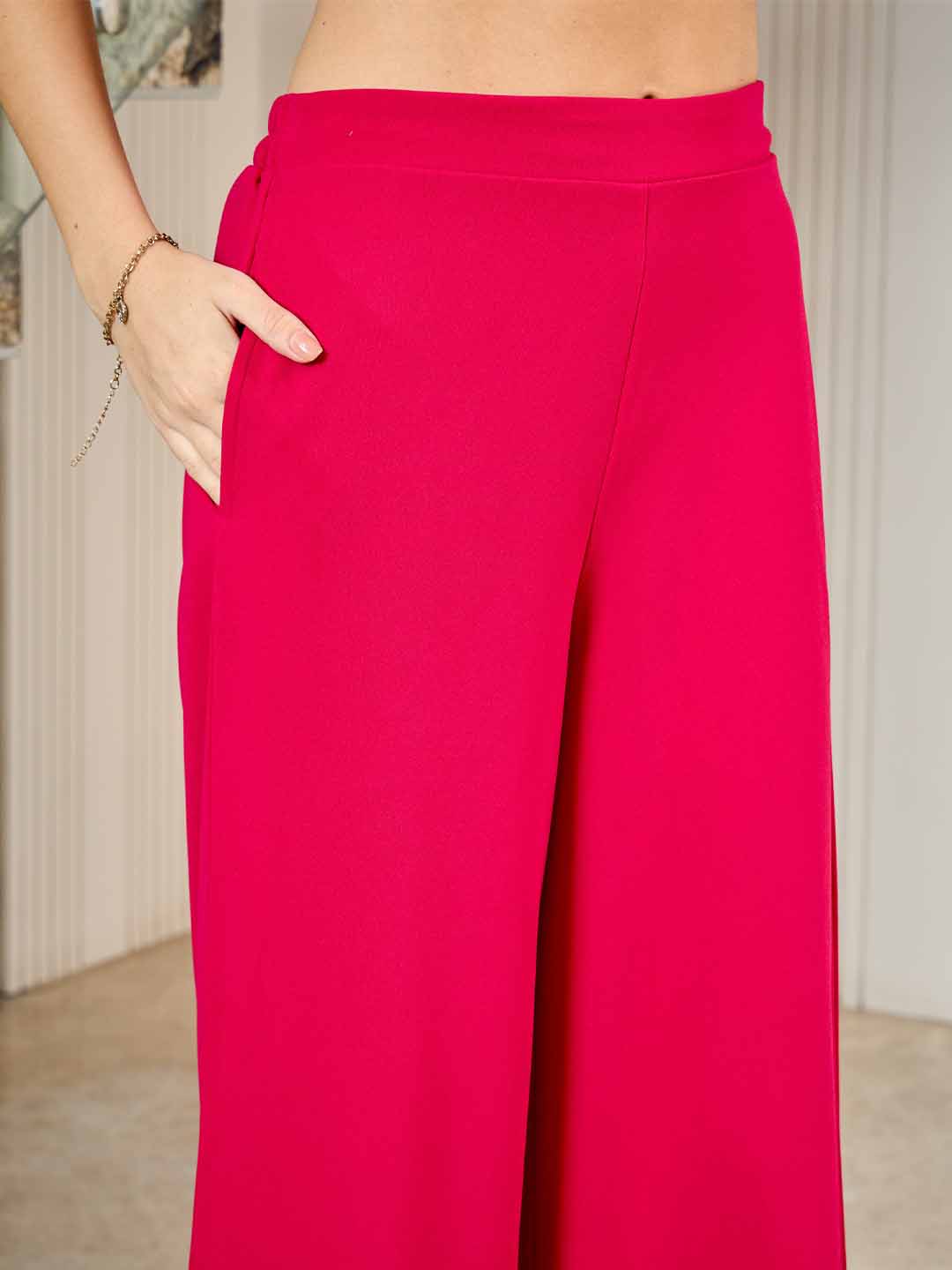 Fuchsia solid palazzo has an elasticated waistband with slip-on closure