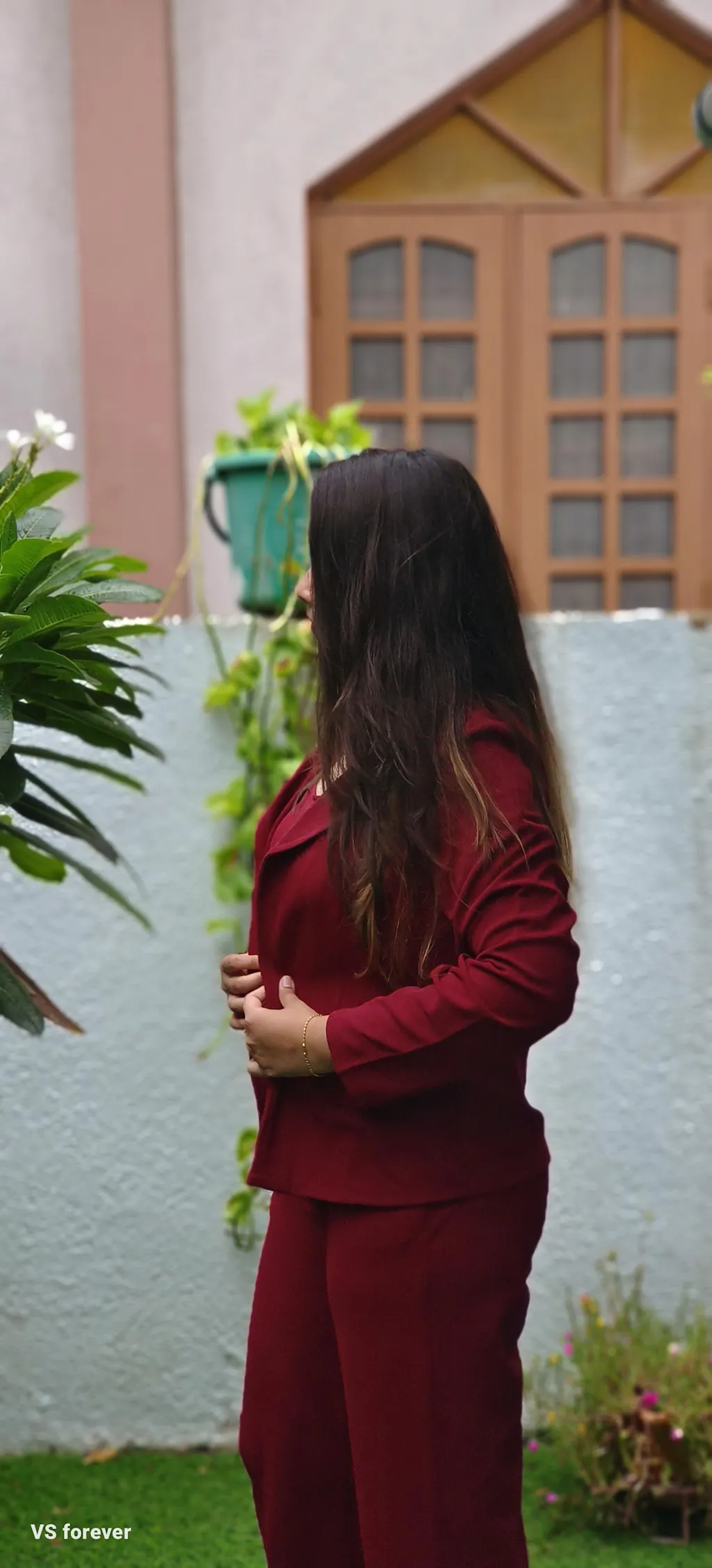 Athena Women Maroon 3 Piece Blazer Co-Ords Set